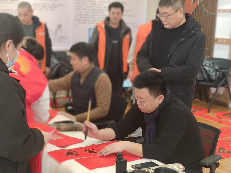 為更好地豐富小區(qū)居民文化生活,迎接歡樂、祥和的新春佳節(jié),2月1日,滕投人和天地小區(qū)開展“翰墨飄香迎新春 紙墨書香送祝?!睂懘郝?lián)送福字活動(dòng)。 活動(dòng)現(xiàn)場志愿者們提前就把春聯(lián)紙、筆墨紙硯等準(zhǔn)備齊全,為大家做好書寫服務(wù)。書法協(xié)會(huì)書法家們一早來到小區(qū),挽袖執(zhí)筆,揮毫潑墨。紅紙為底,黑墨為字