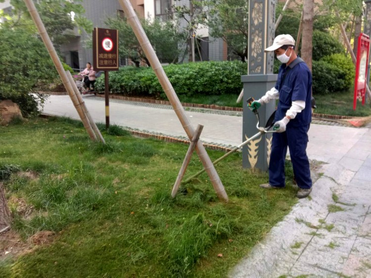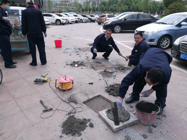 物業(yè)對(duì)損壞道路地磚進(jìn)行修補(bǔ)對(duì)草坪進(jìn)行修剪