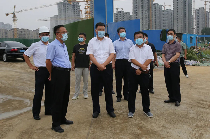 8月10日,市委常委、政法委書記劉慶東,市委政法委分管日常工作的副書記朱瑞國,市社會治理綜合服務(wù)中心主任謝凱一行來小崗區(qū)域改造項(xiàng)目督導(dǎo)疫情防控和生態(tài)環(huán)境保護(hù)工作。北辛街道黨工委書記馬金安,集團(tuán)董事長方玉新參加活動。劉慶東詳細(xì)察看了項(xiàng)目疫情防護(hù)措施及建筑工地?fù)P塵治理等工作情況,并對相關(guān)工作給予充分肯定和高